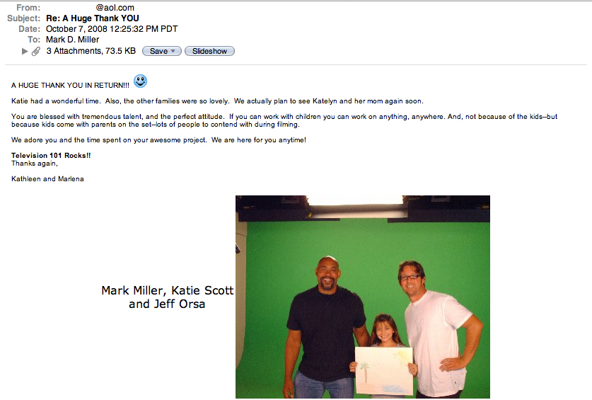 Team television 101 would like to thank Peter Walsh, Julie Krueger,
